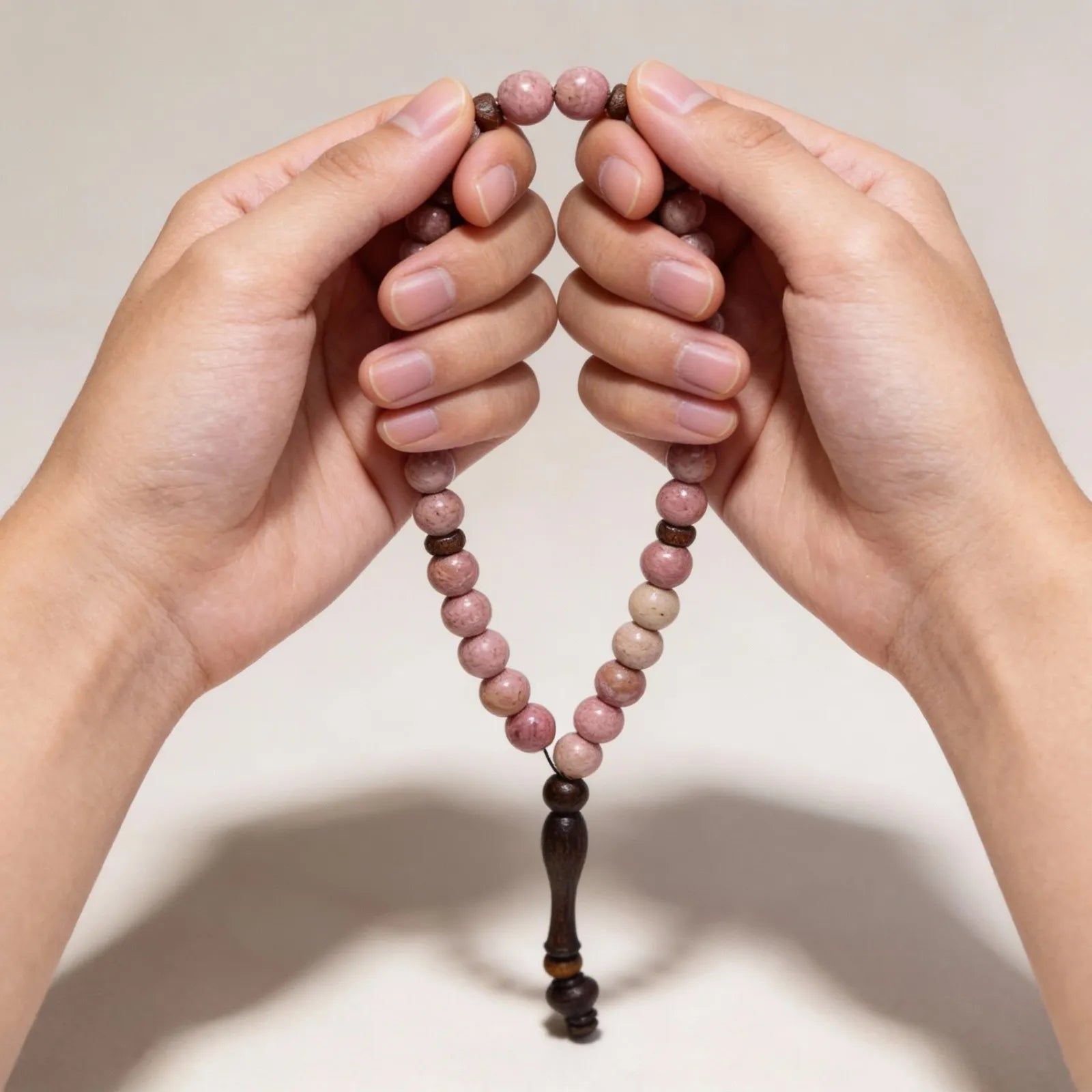 Spiritual Energy: Rhodonite is known for emotional healing, compassion, and inner peace, encouraging calm reflection and heart-centered recitation.