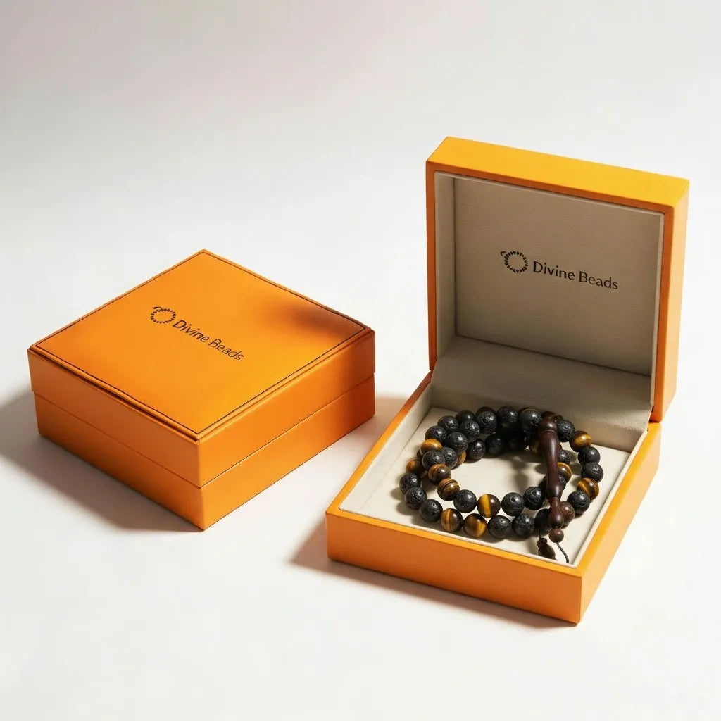 Spiritual Energy: Tiger Eye supports focus, confidence, and inner strength, while Black Lava represents resilience, calm, and grounding during recitation.